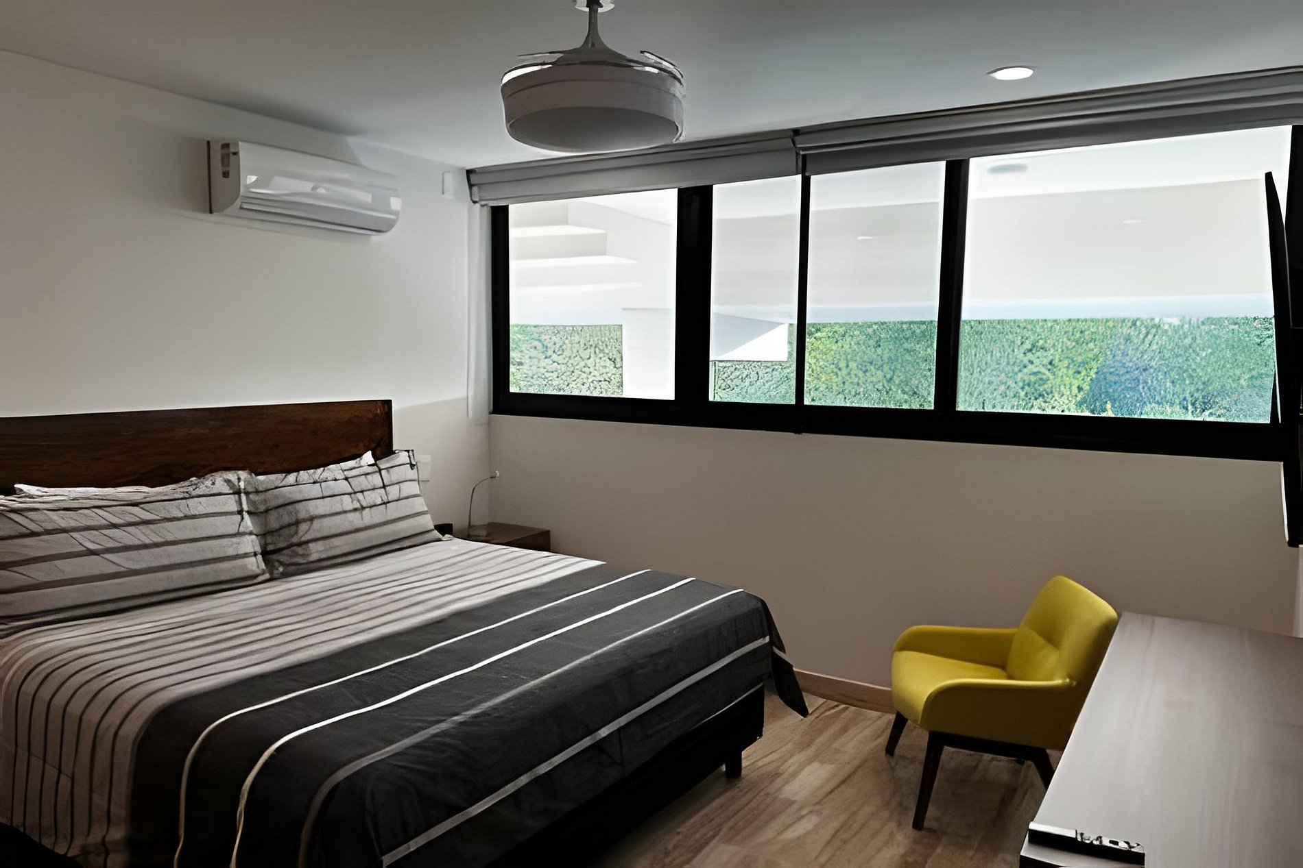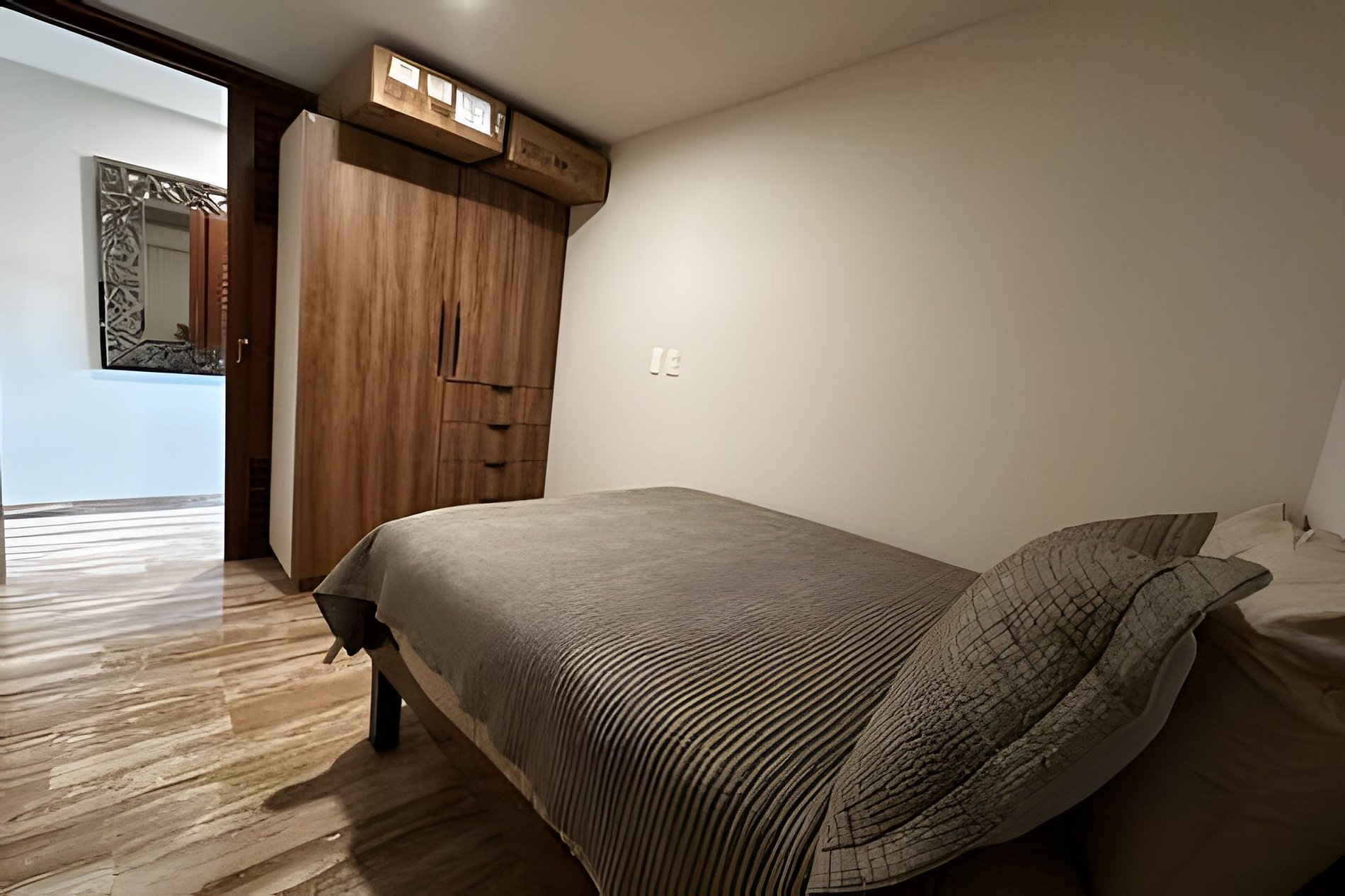 La recámara principal cuenta con una cama King Size y la segunda recámara con una cama matrimonial con una cama debajo rondante individual.