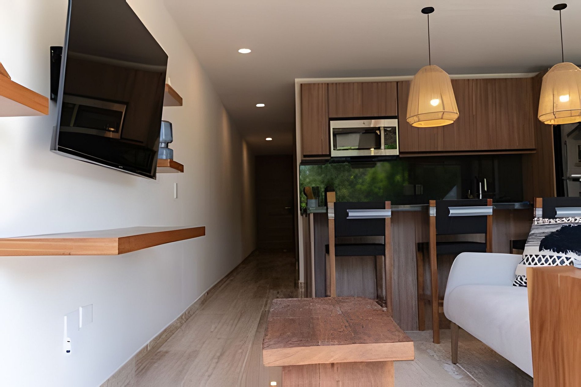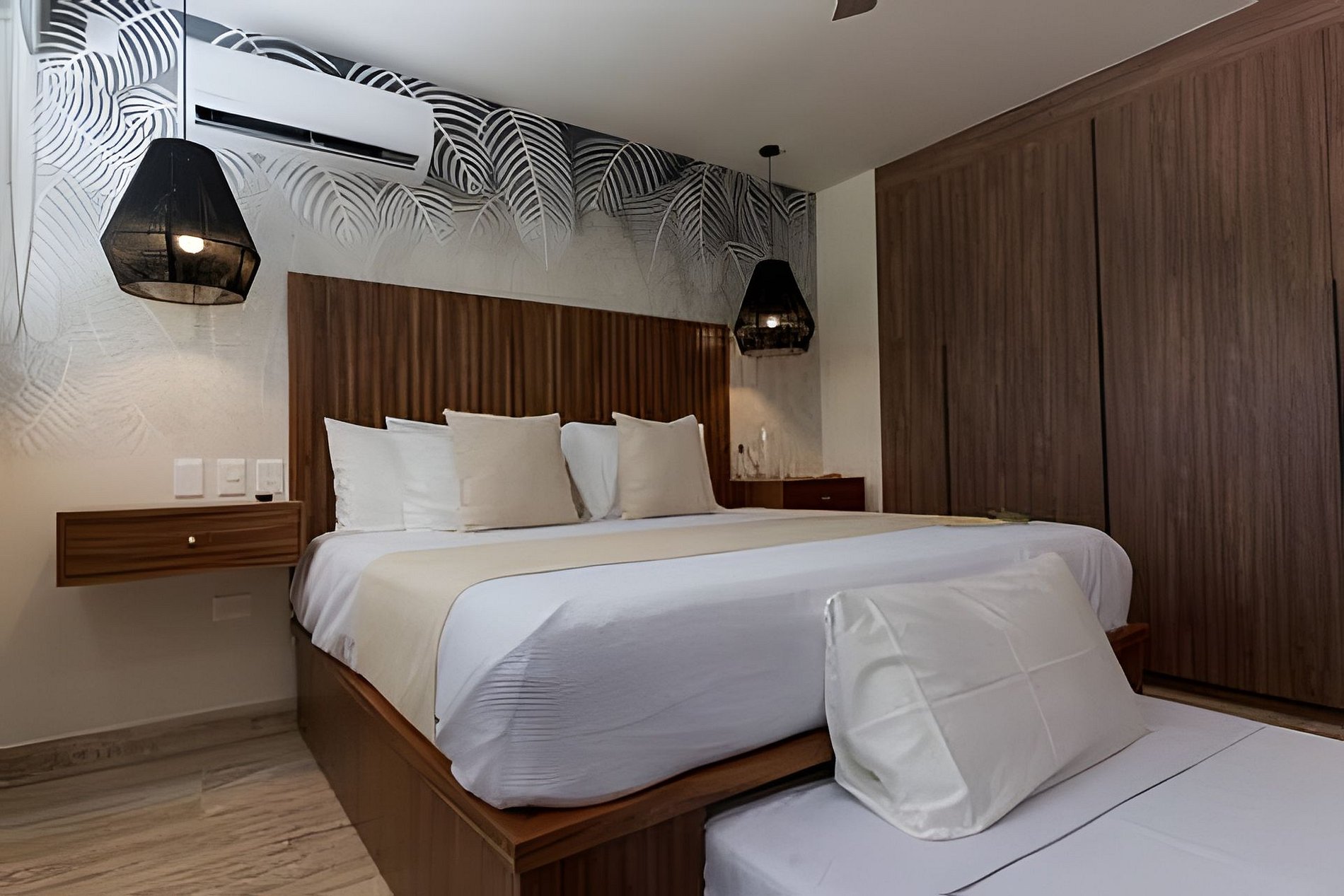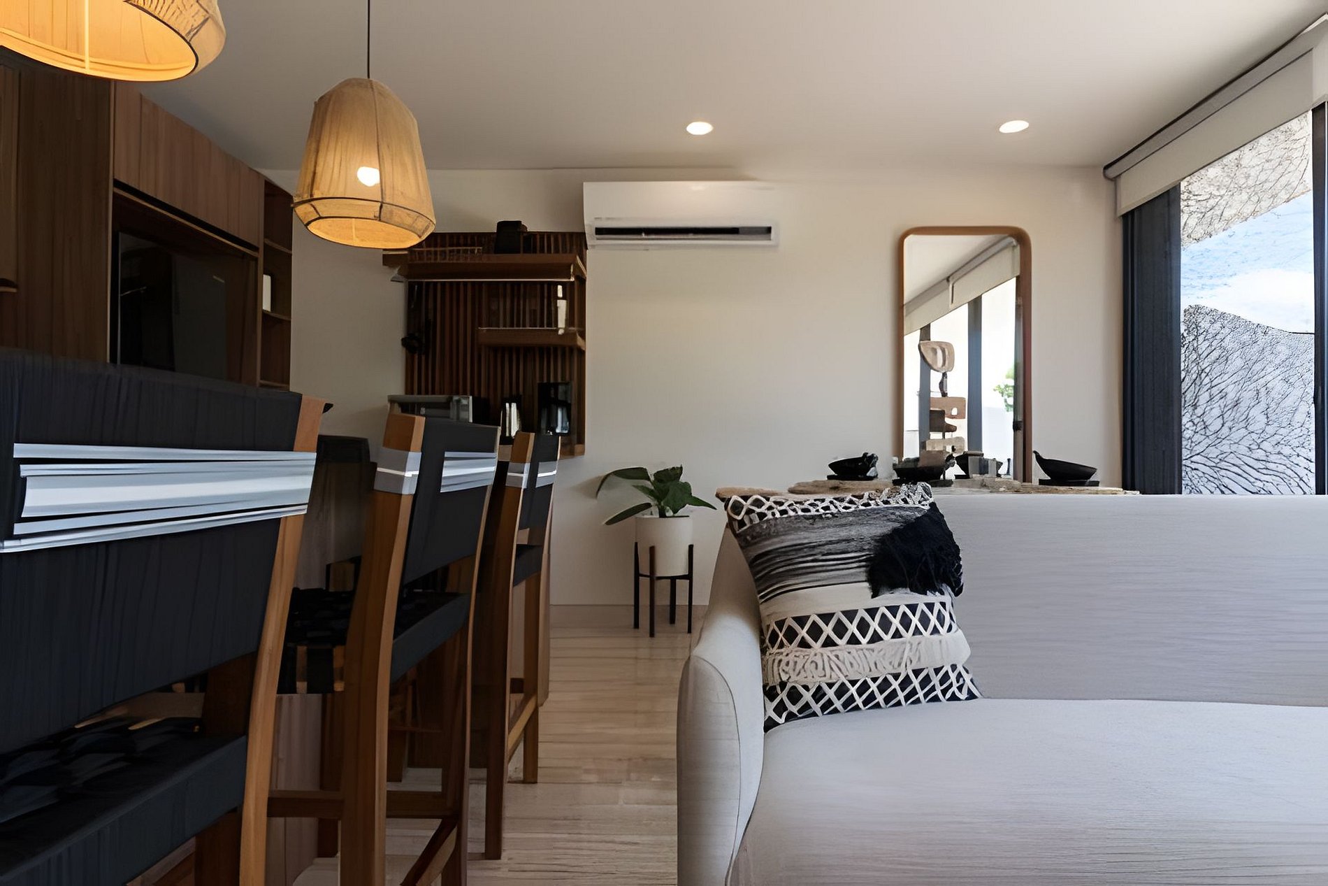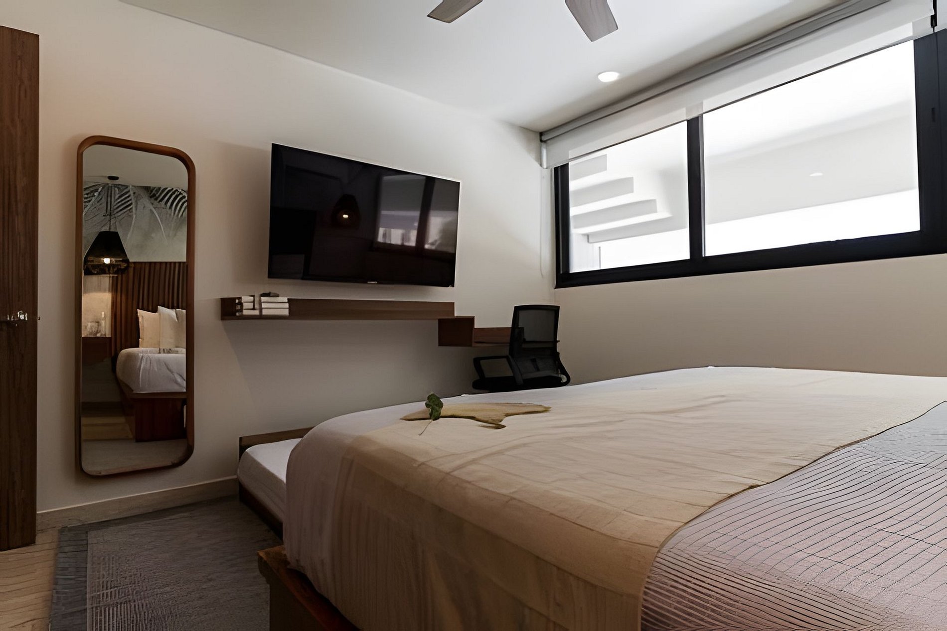 The rooms are designed with elegance and comfort, providing guests with a sanctuary of tranquility to relax and unwind after a day full of adventures in the Riviera Maya. Each room is meticulously decorated with modern and welcoming furniture, creating a relaxing atmosphere. The beds are comfortable, ensuring a restful night's sleep. Additionally, the apartment feature large windows that allow natural light to enter and offer stunning views of the lush gardens and the complex's pool