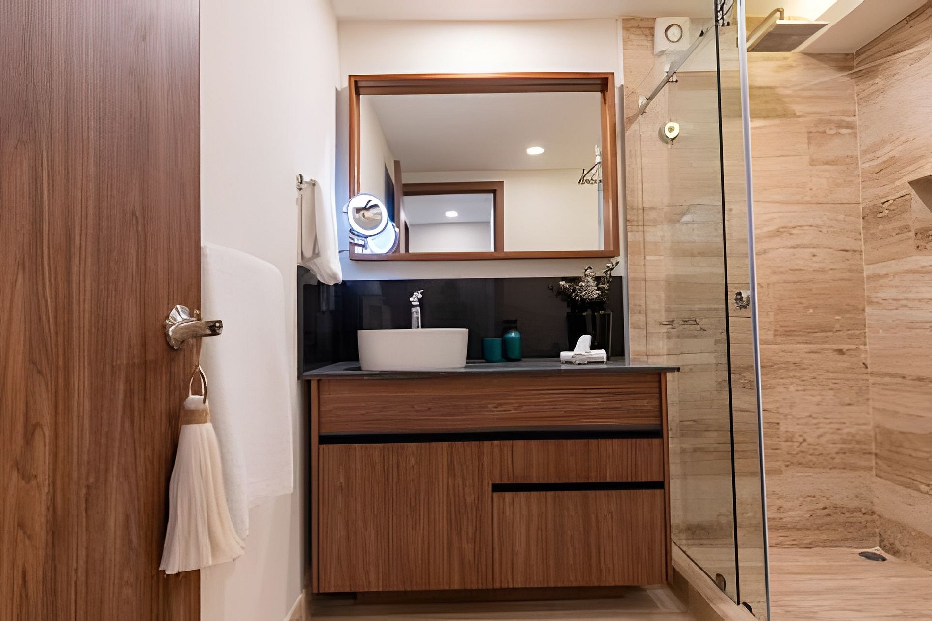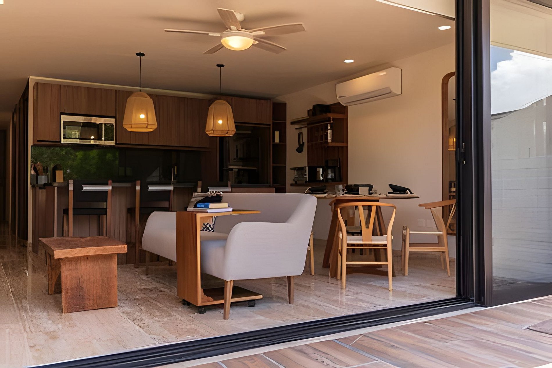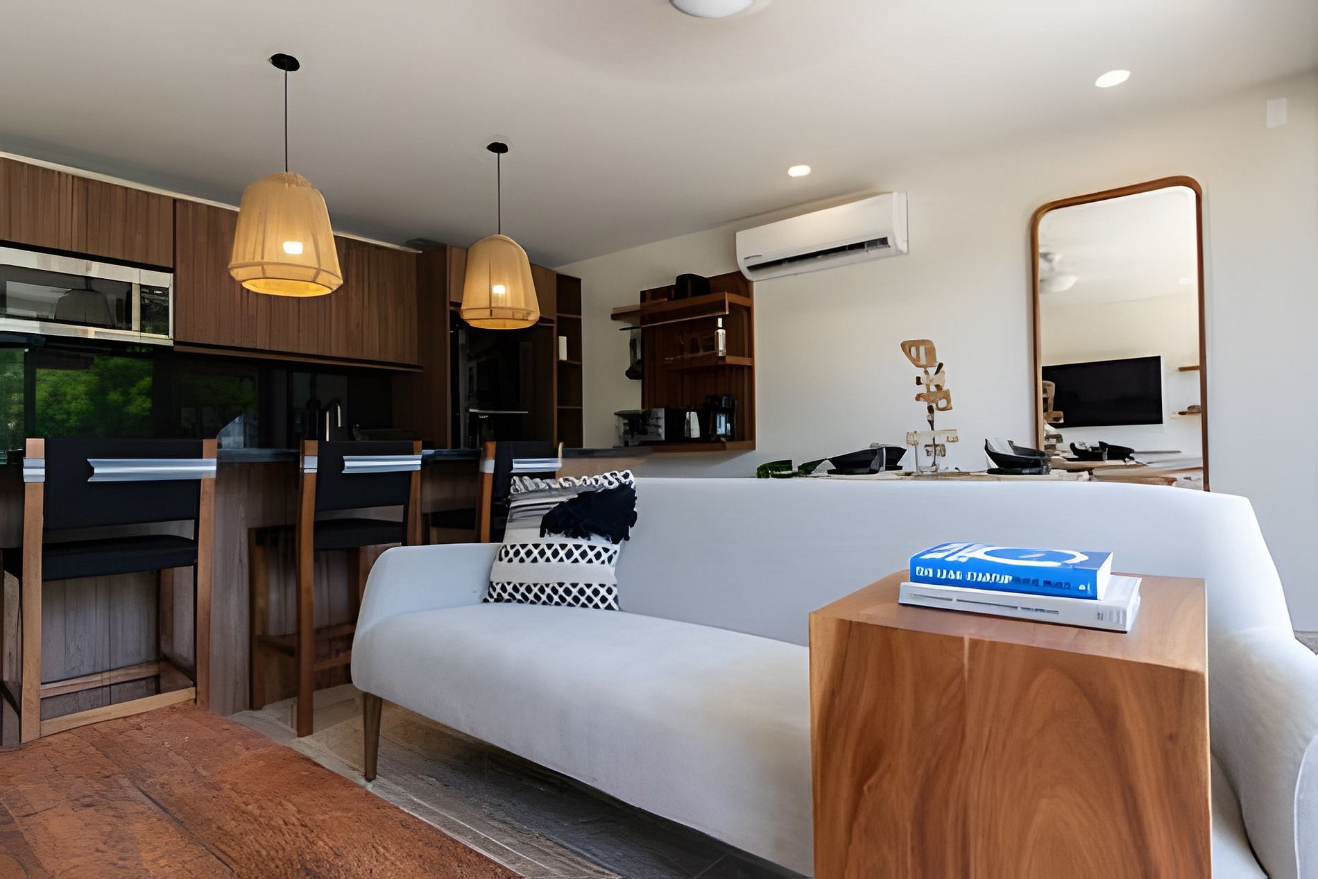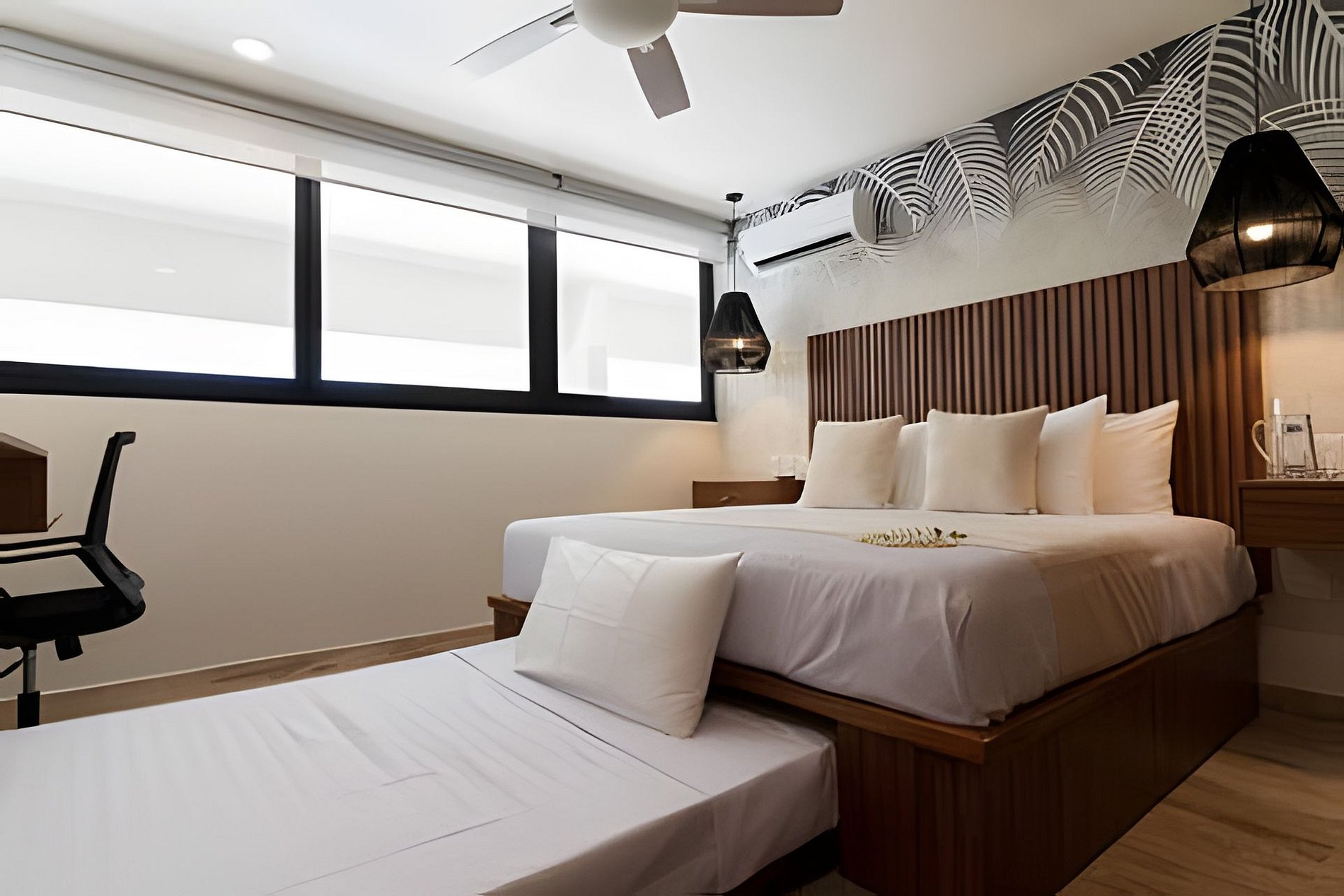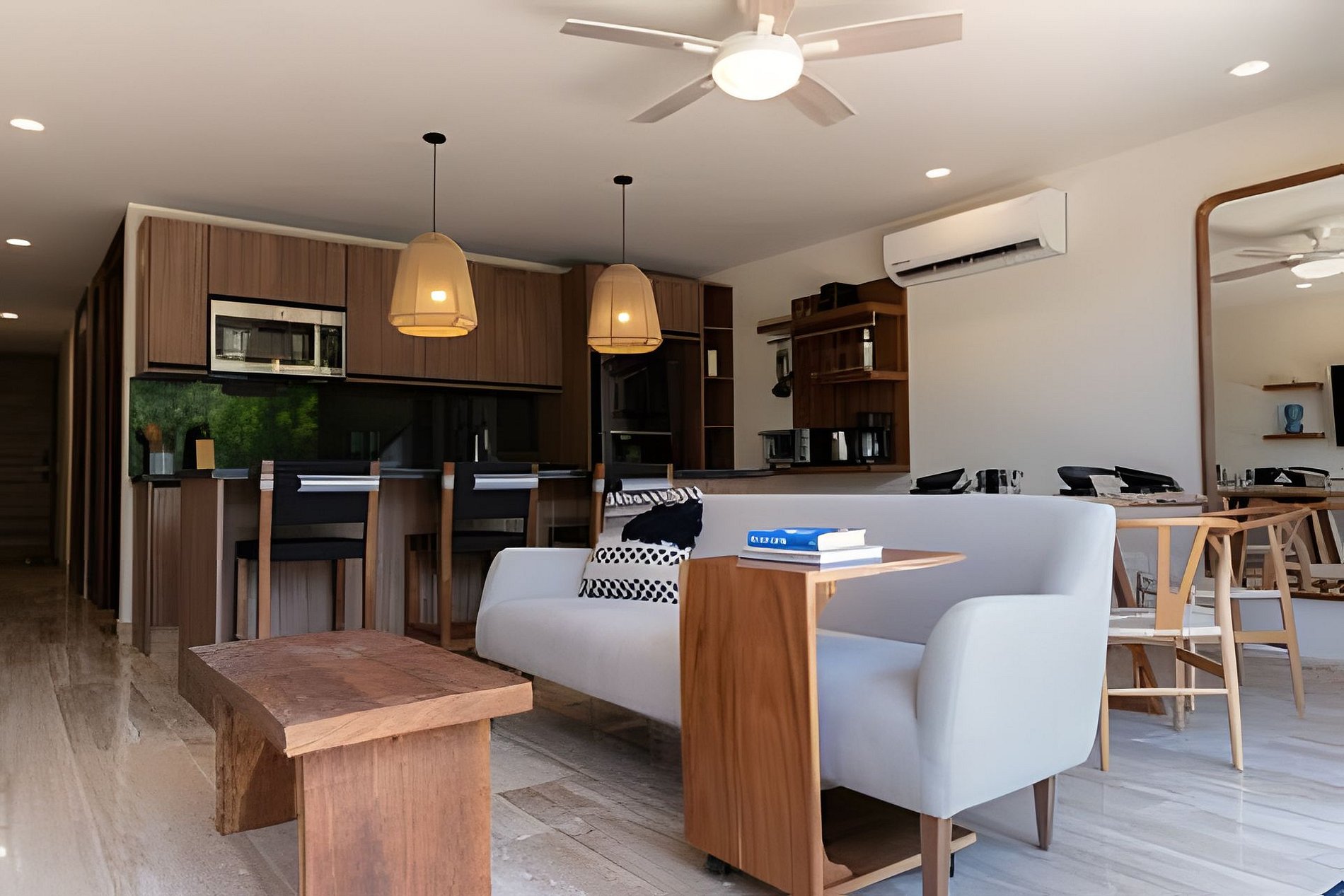 The rooms are designed with elegance and comfort, providing guests with a sanctuary of tranquility to relax and unwind after a day full of adventures in the Riviera Maya. Each room is meticulously decorated with modern and welcoming furniture, creating a relaxing atmosphere. The beds are comfortable, ensuring a restful night's sleep. Additionally, the apartment feature large windows that allow natural light to enter and offer stunning views of the lush gardens and the complex's pool