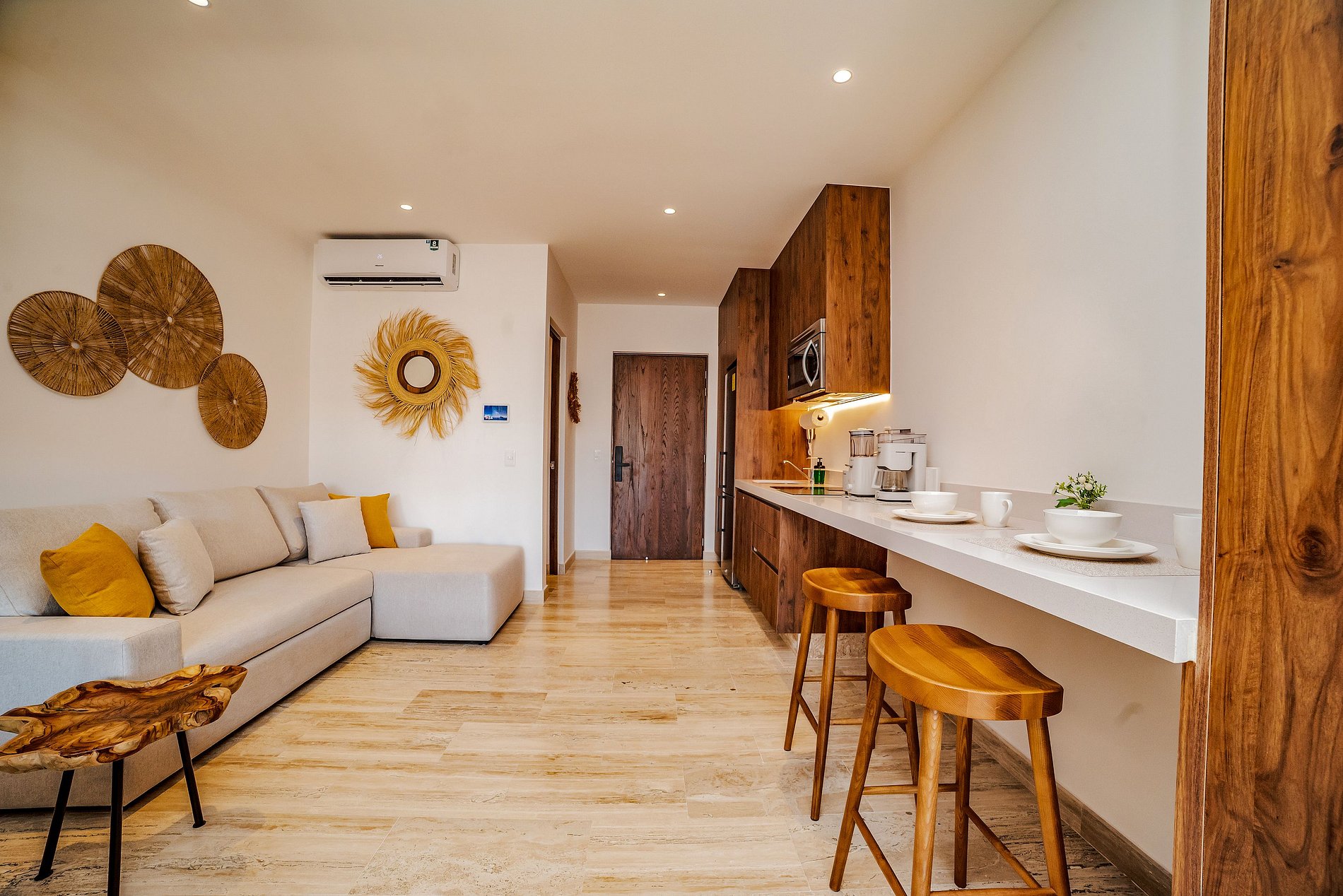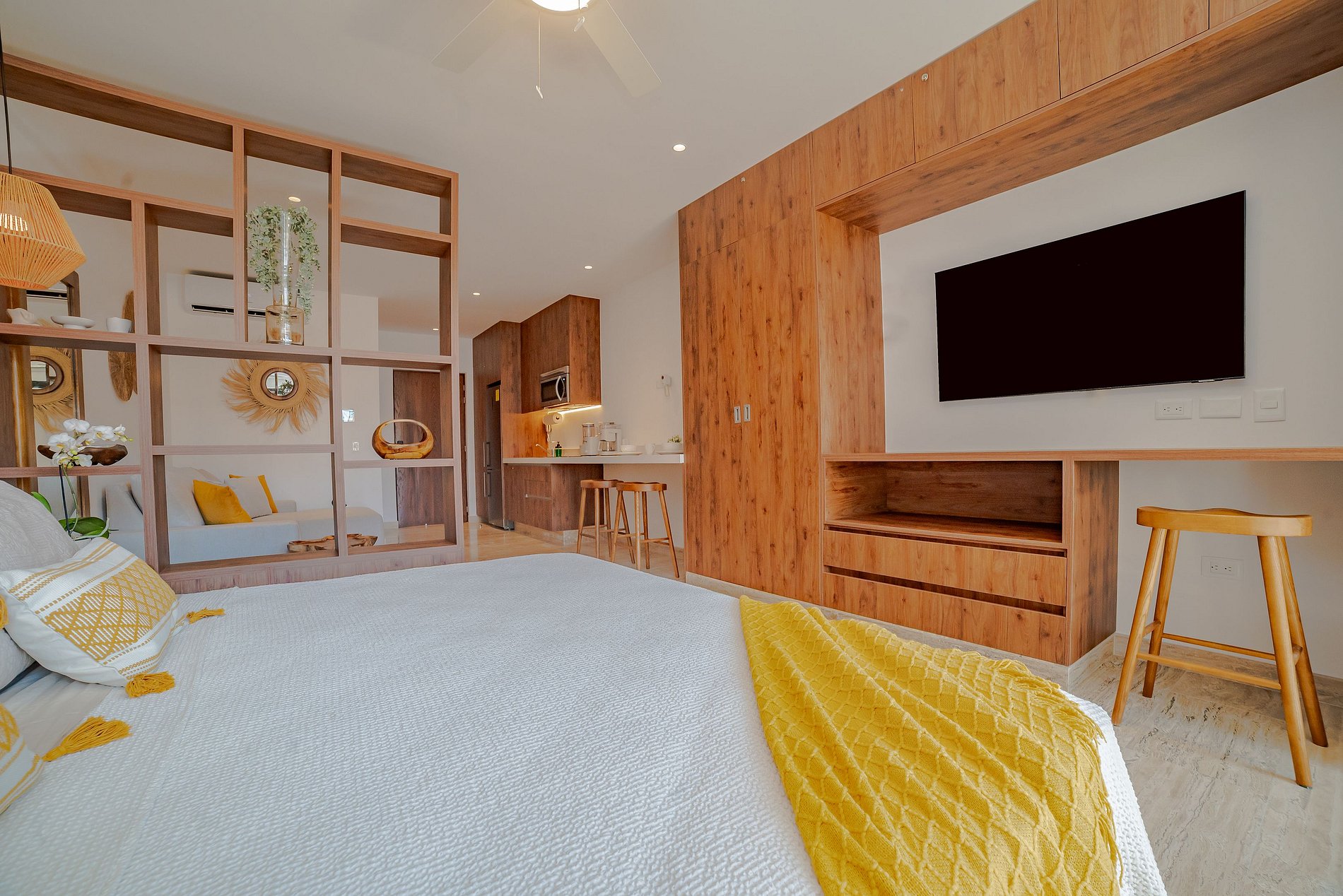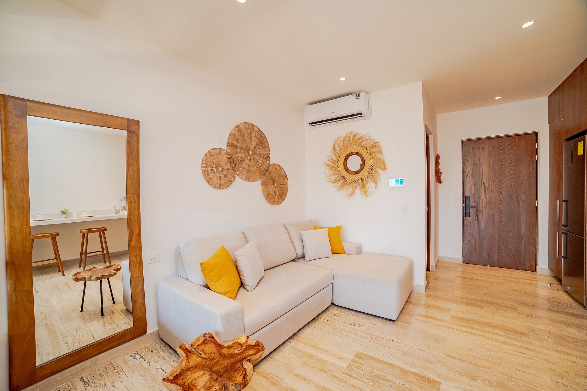 En el corazón de Playa del Carmen te espera un chic y elegante estudio, a solo 45 pasos de la 5ta Avenida y 3 cuadras del mar. Todo es completamente nuevo: cama King size con colchón premium para noches reparadoras tras días de sol, sofá cama amplio y cada detalle elegido con amor. Te enamorarás de nuestro departamento con balcón privado, pensado para que te sientas en casa. Con gym, hamacas, recepción, seguridad y estacionamiento privado, nos encargaremos de que tu experiencia sea inolvidable.