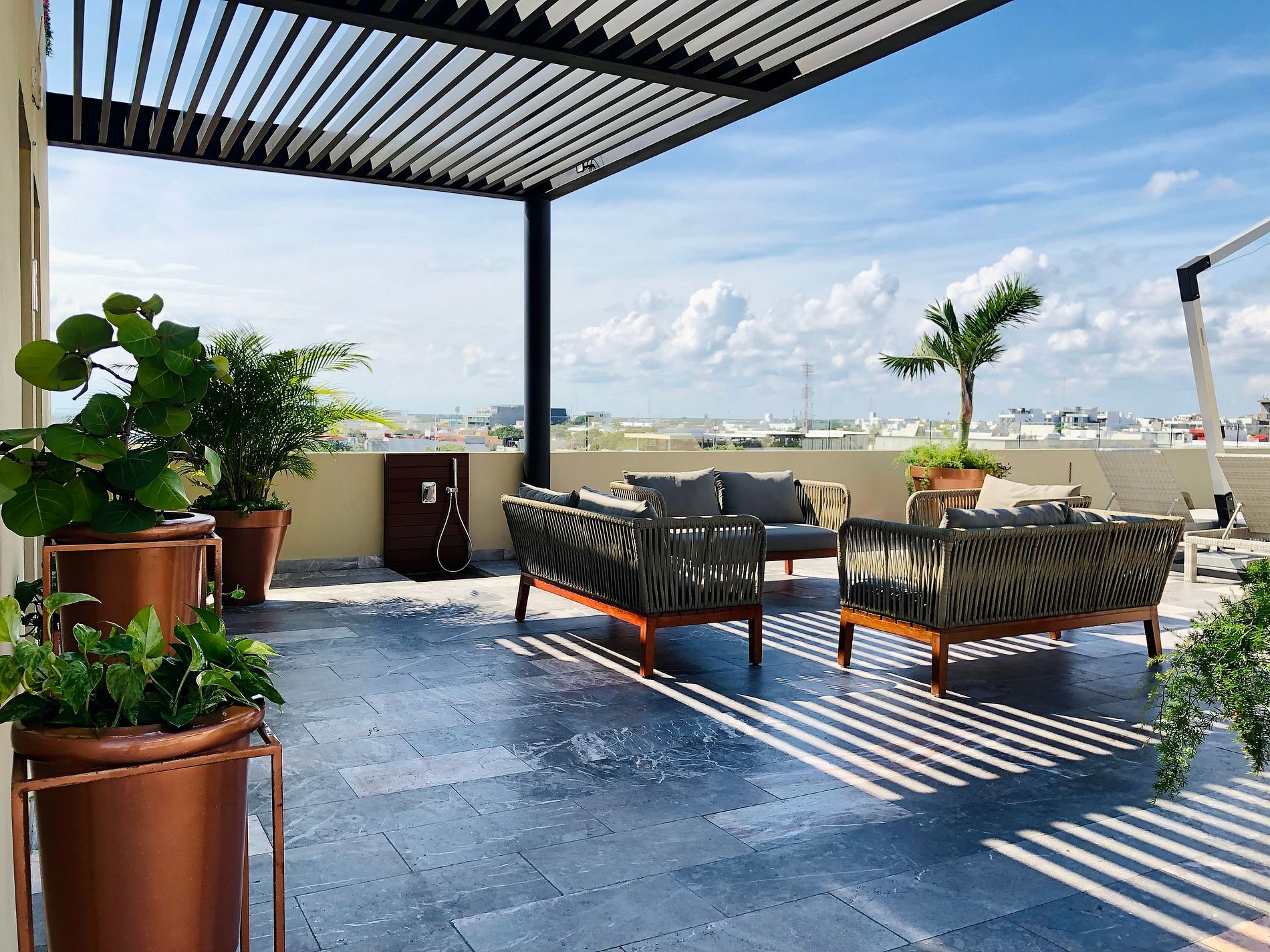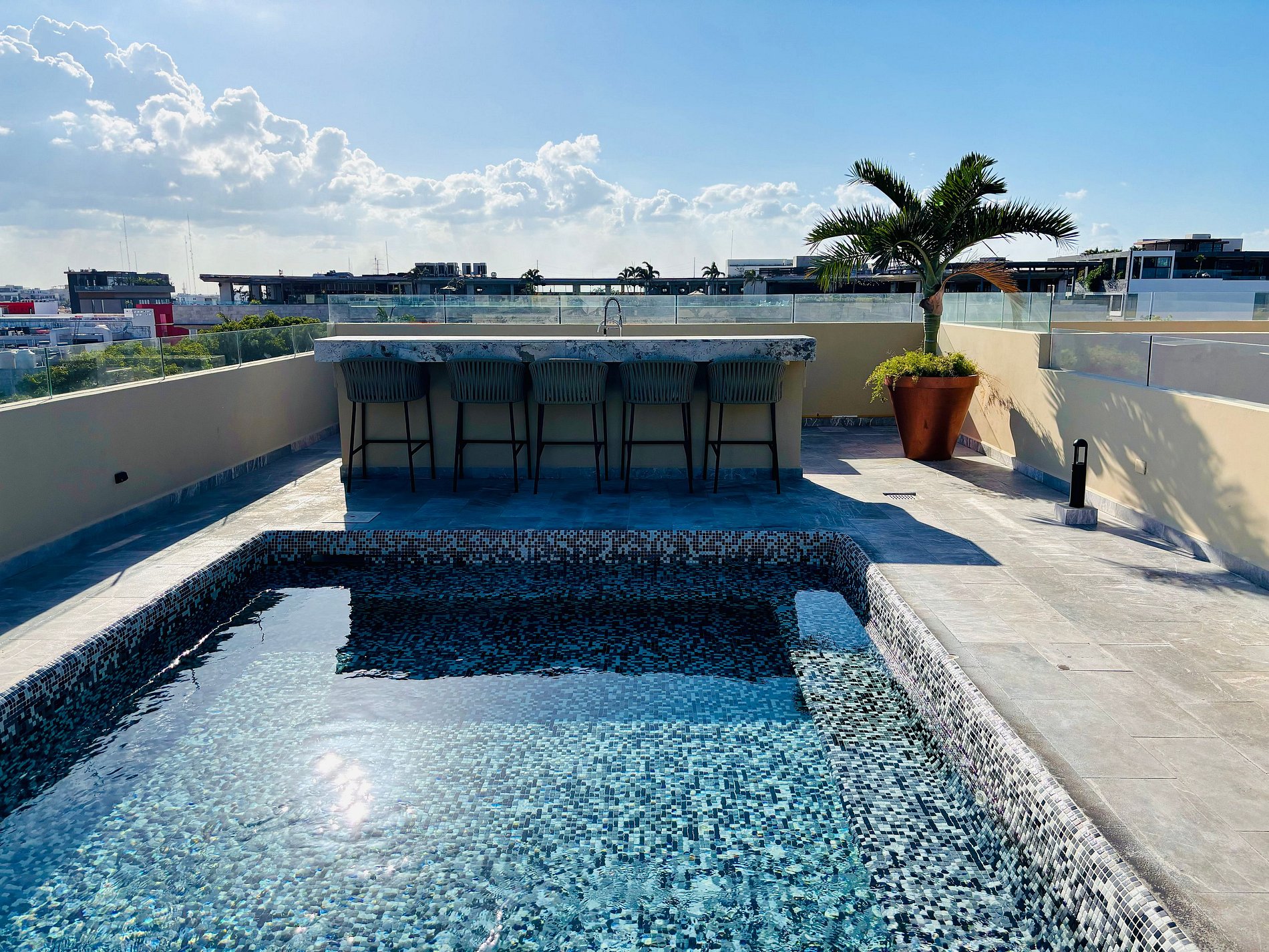 Desde la terraza del condominio, podrás disfrutar de vistas inigualables del Caribe mexicano y del vibrante corazón de la ciudad. Ya sea disfrutando de un café al amanecer o de cócteles al atardecer, cada momento en esta terraza te dejará sin aliento.